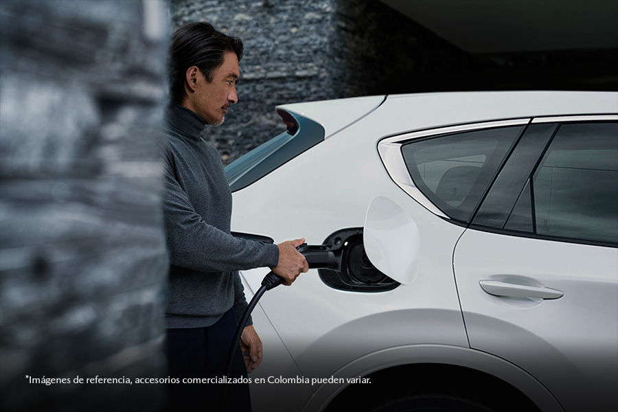 Cuando se agote la batería, puedes seguir conduciendo con el motor de gasolina eSkyactiv – G, que te respalda en cada trayecto y reduce tus preocupaciones en el camino, dándote la libertad de recorrer distancias más largas que las que ofrece la batería por sí sola. También puedes conectar tu vehículo y cargarlo desde la red de energía doméstica a través del cable de carga incluido.
