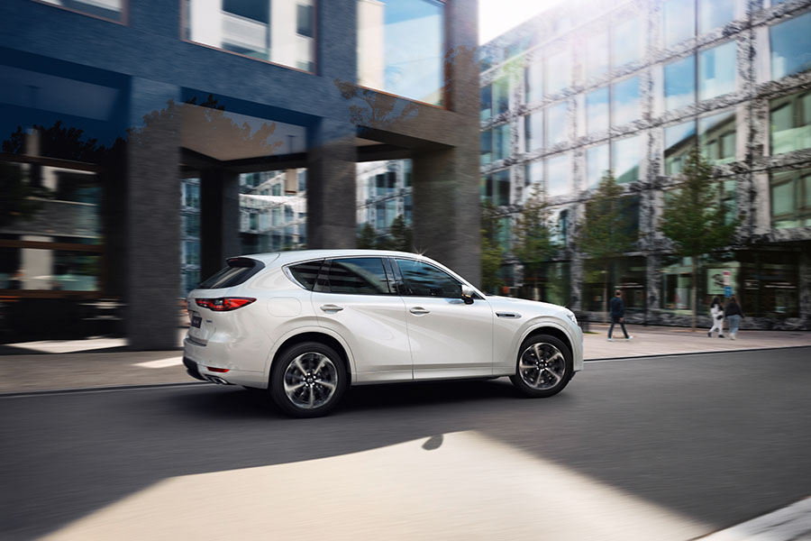 La nueva Mazda CX-60 Híbrida Enchufable, también adopta el sistema de frenado regenerativo que recupera energía eficientemente mediante la coordinación del frenado por fricción y la regeneración del motor.